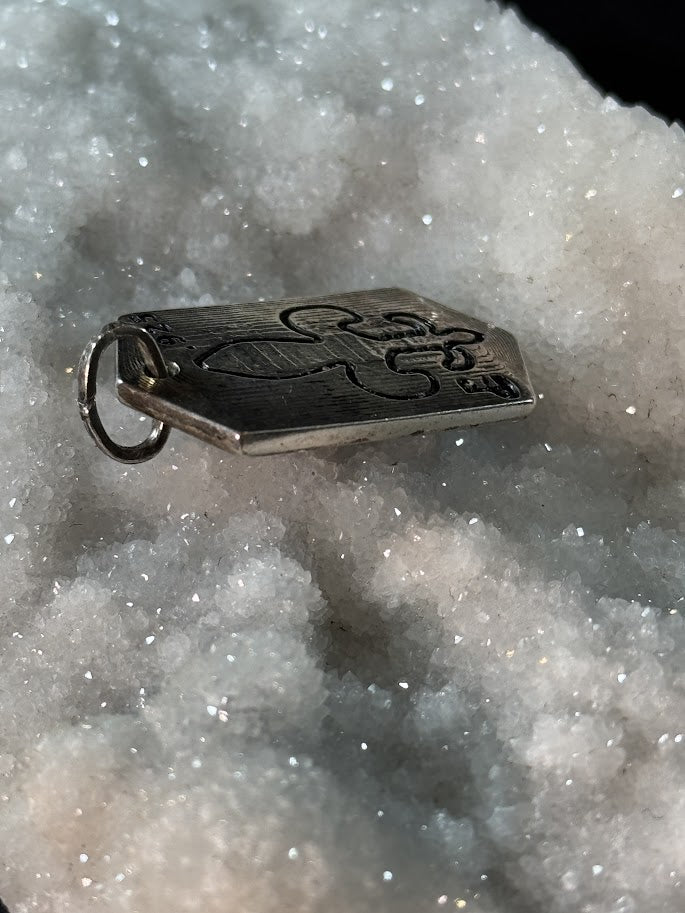 Cast in solid .925 sterling silver, the back of the pendant is stamped with our signature emblem and hallmark to certify authenticity. The pendant has a timeworn patina, giving it a rich, aged feel—perfect for pairing with both classic and streetwear looks.