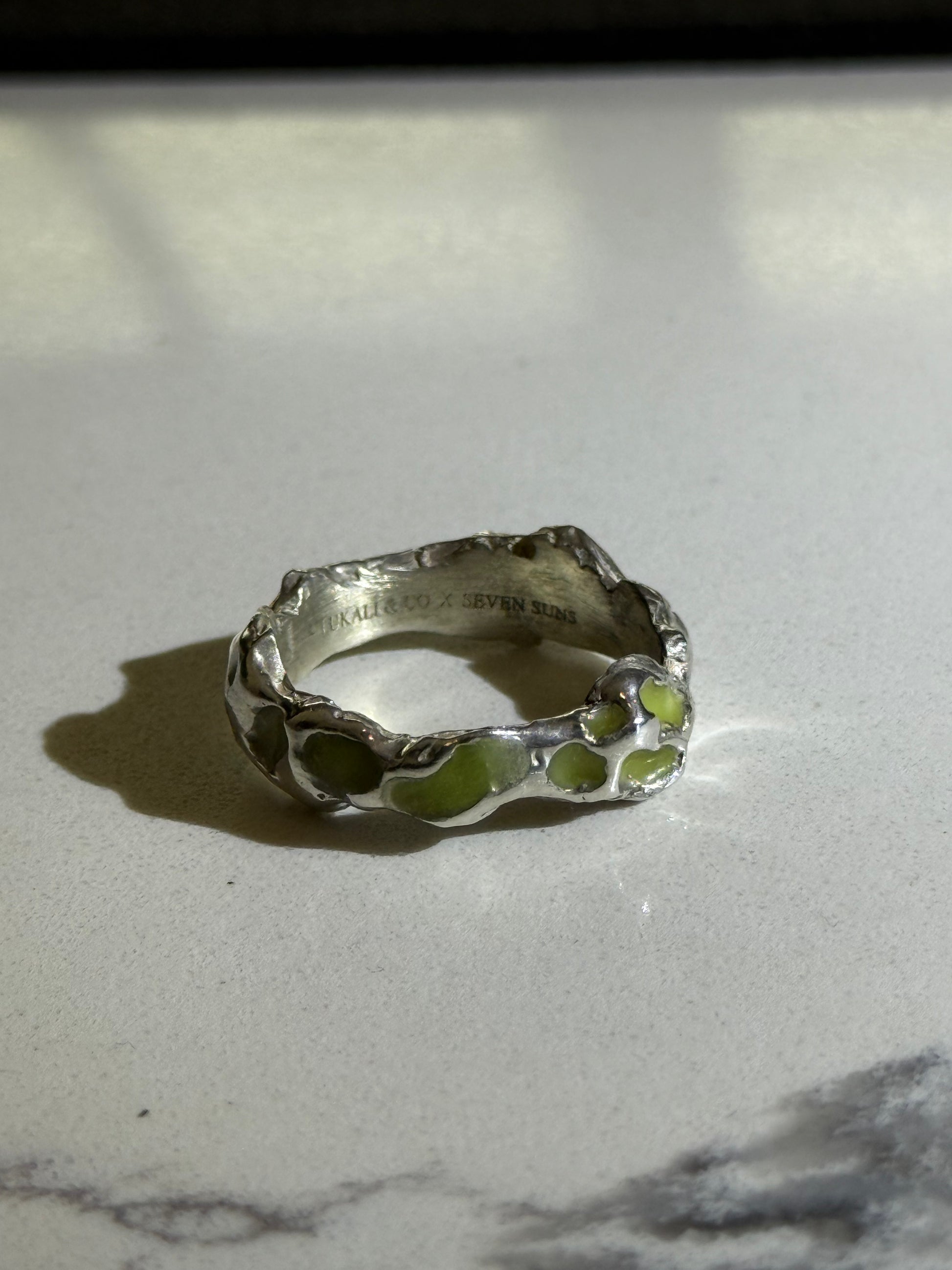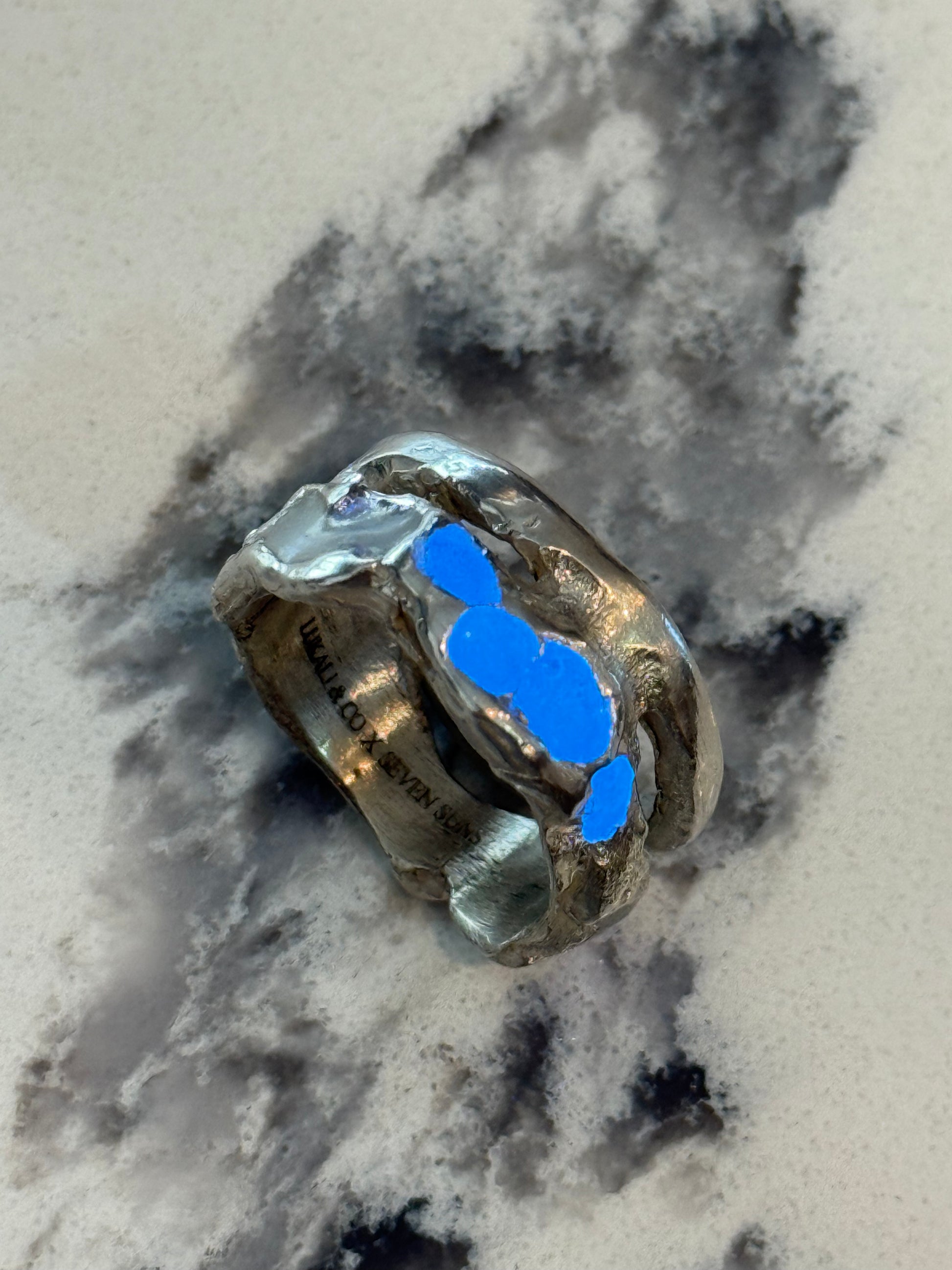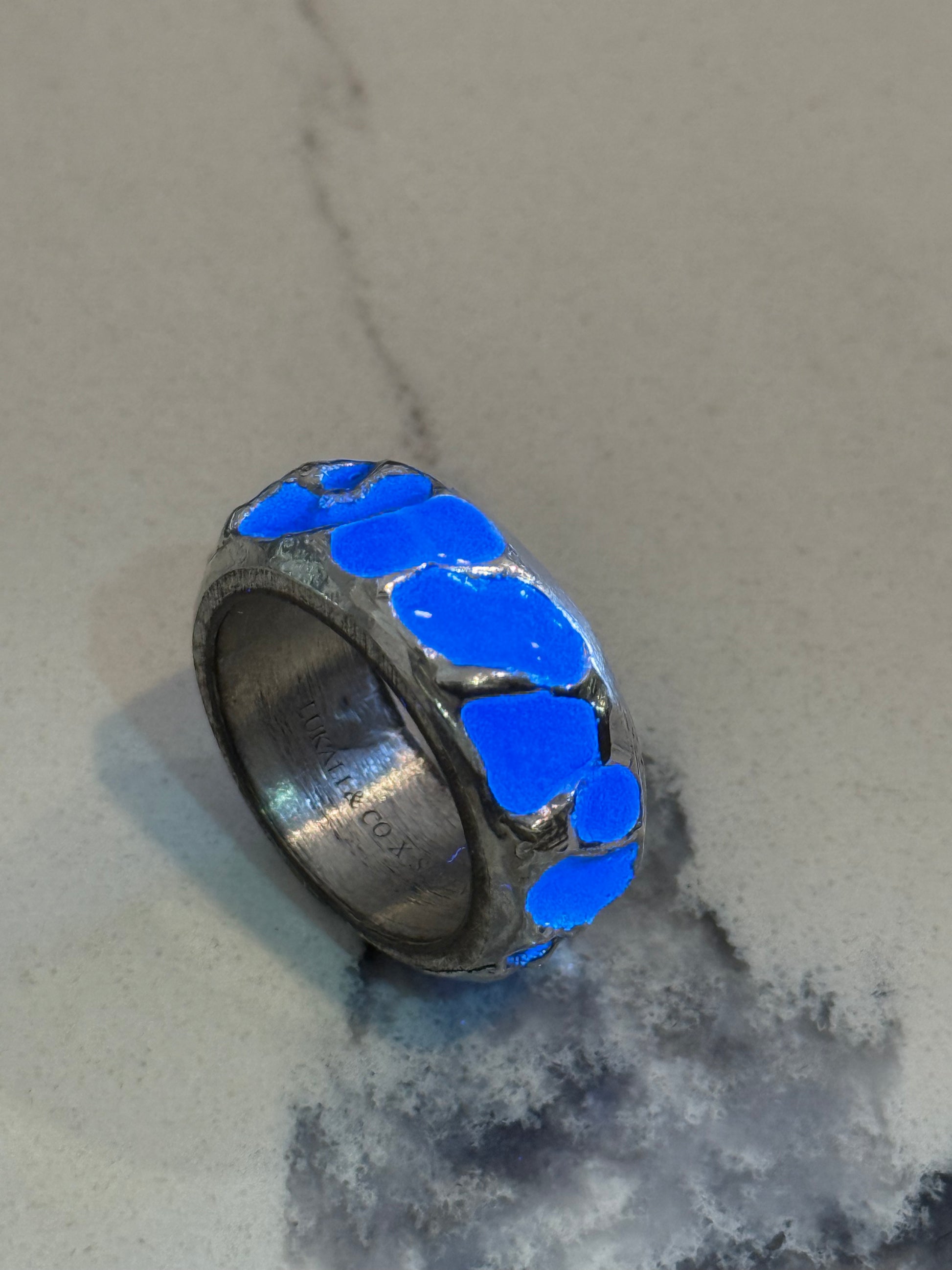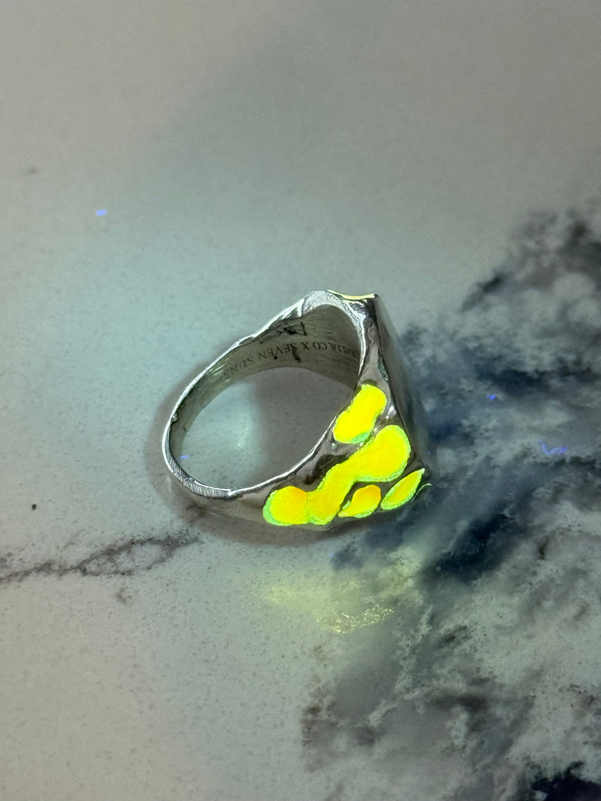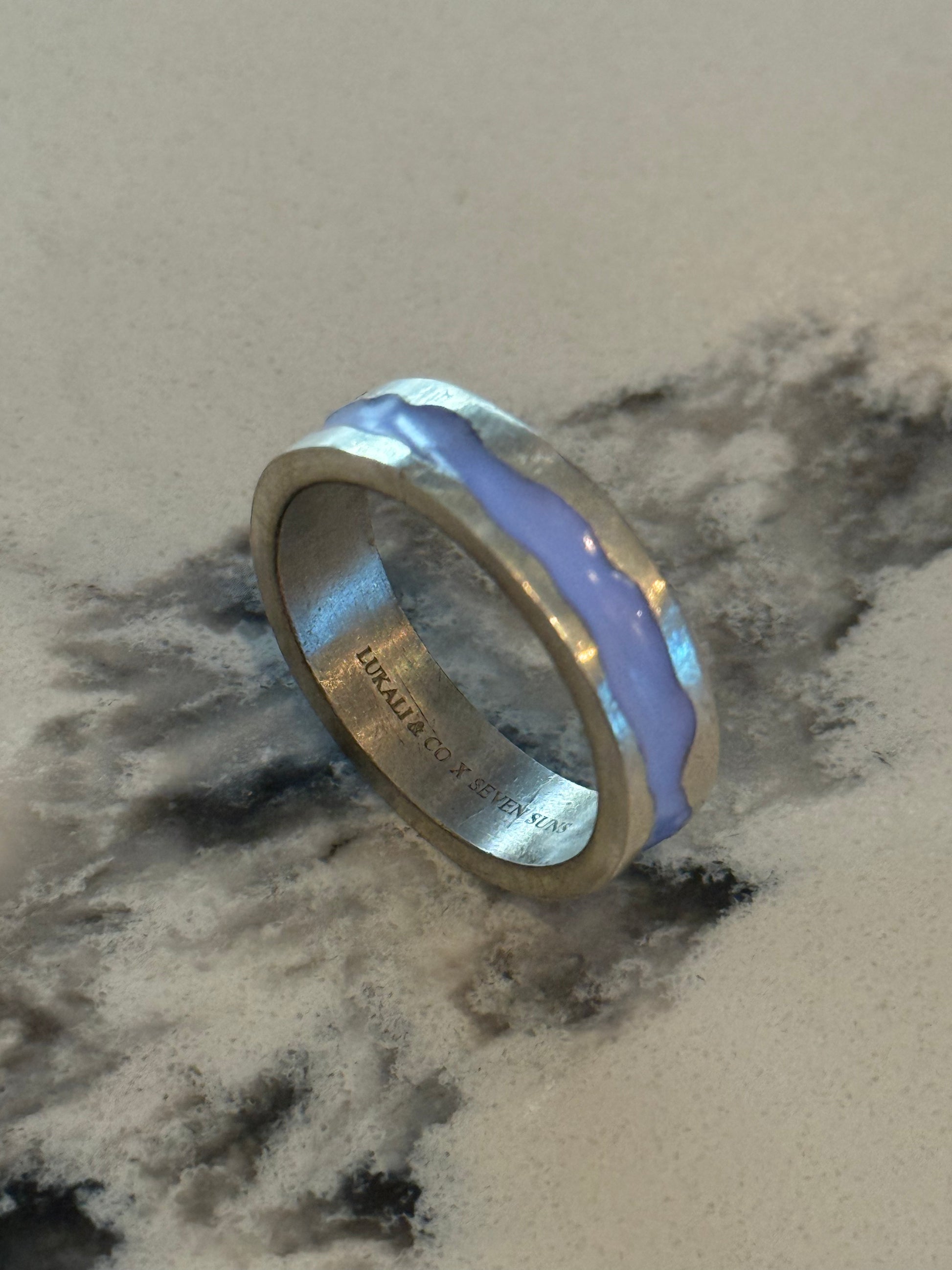 When Lukali saw what Seven Suns Jewelry was creating, it instantly sparked a vision. Their raw, meteor-like textures had that feeling of a relic that just emerged from the earthâs core. Pair that with the glow enamel weâve been perfecting, and it felt inevitable â we had to make it happen. A true âmeteor ring,â alive with light.