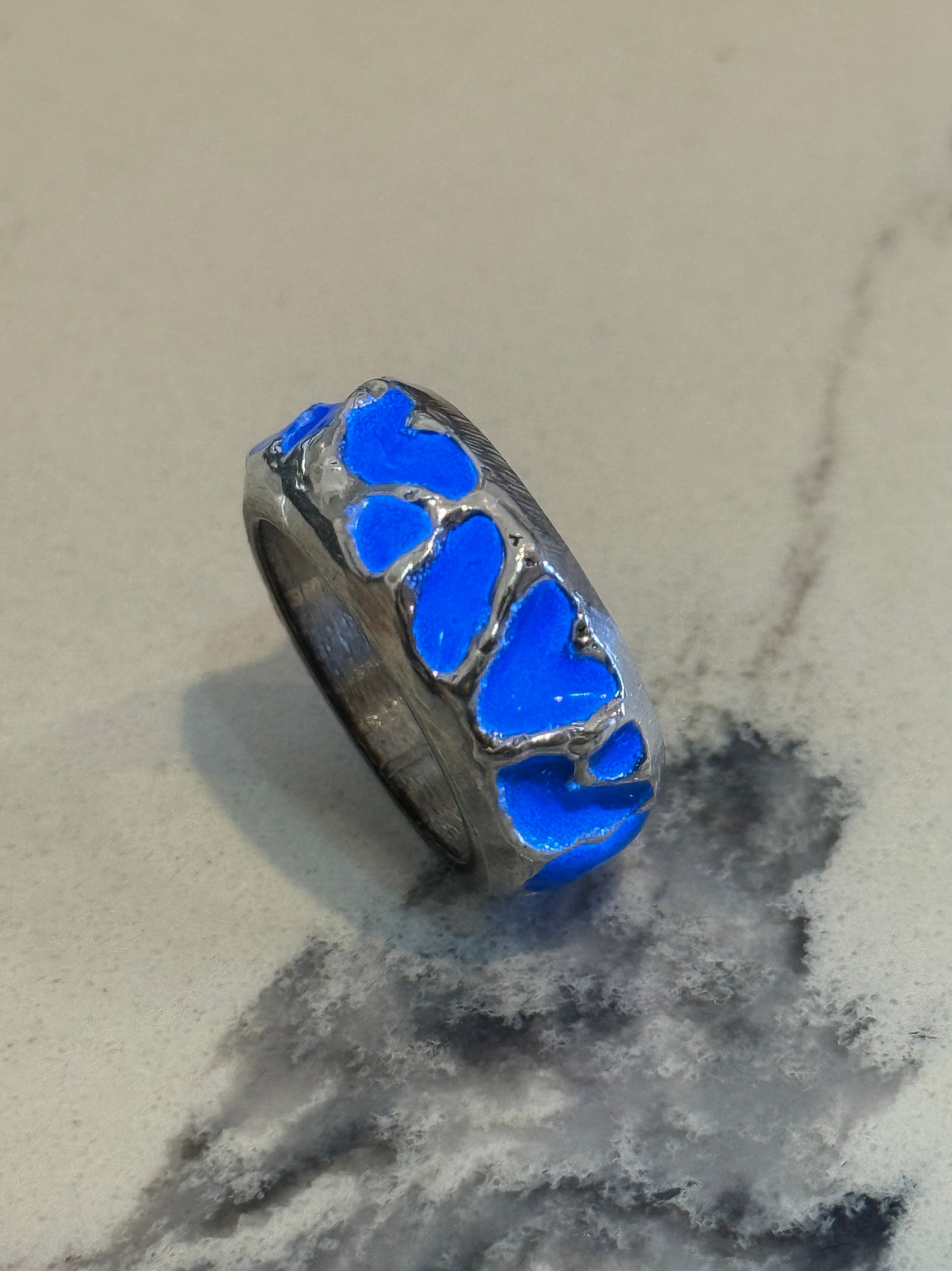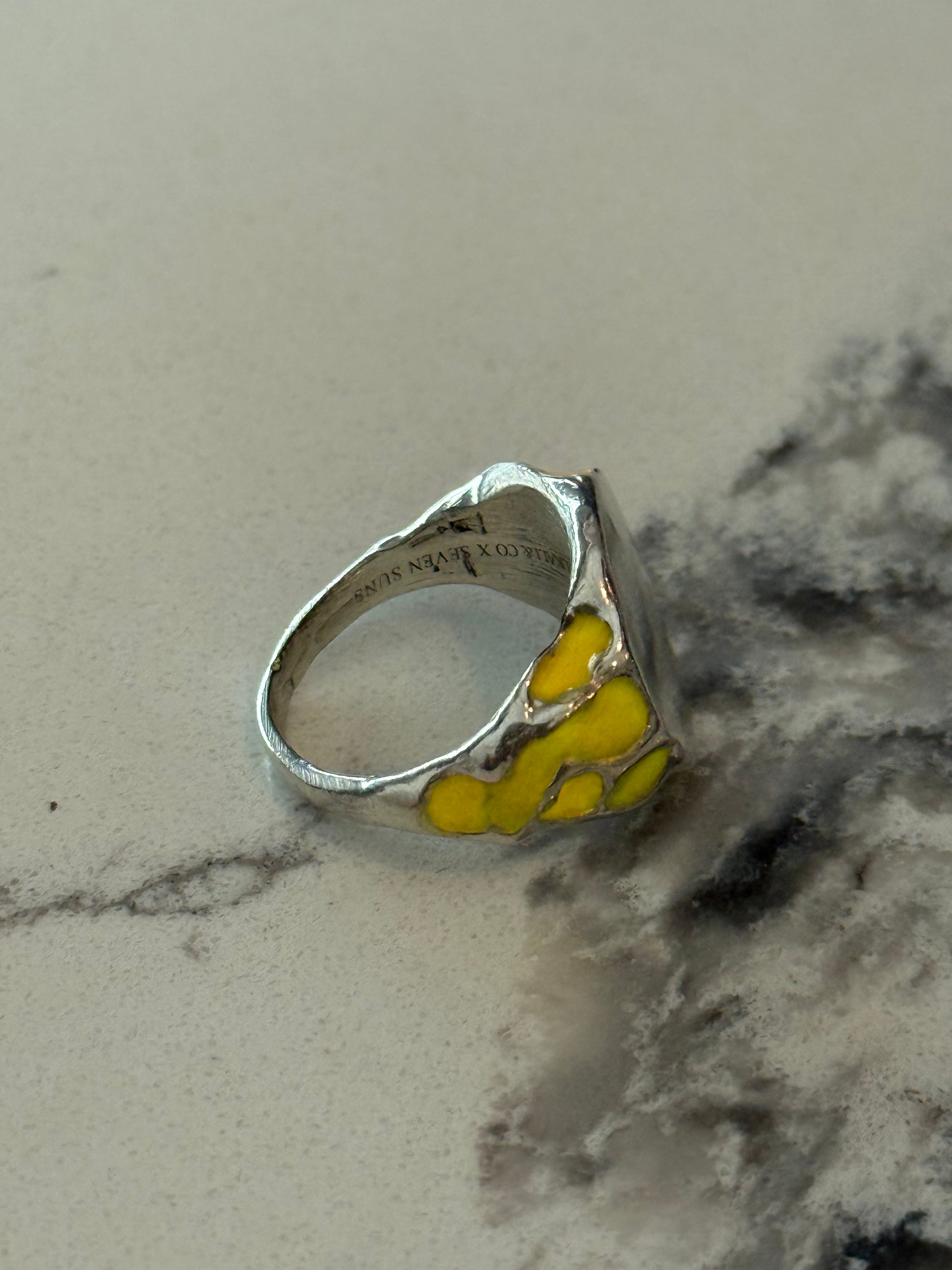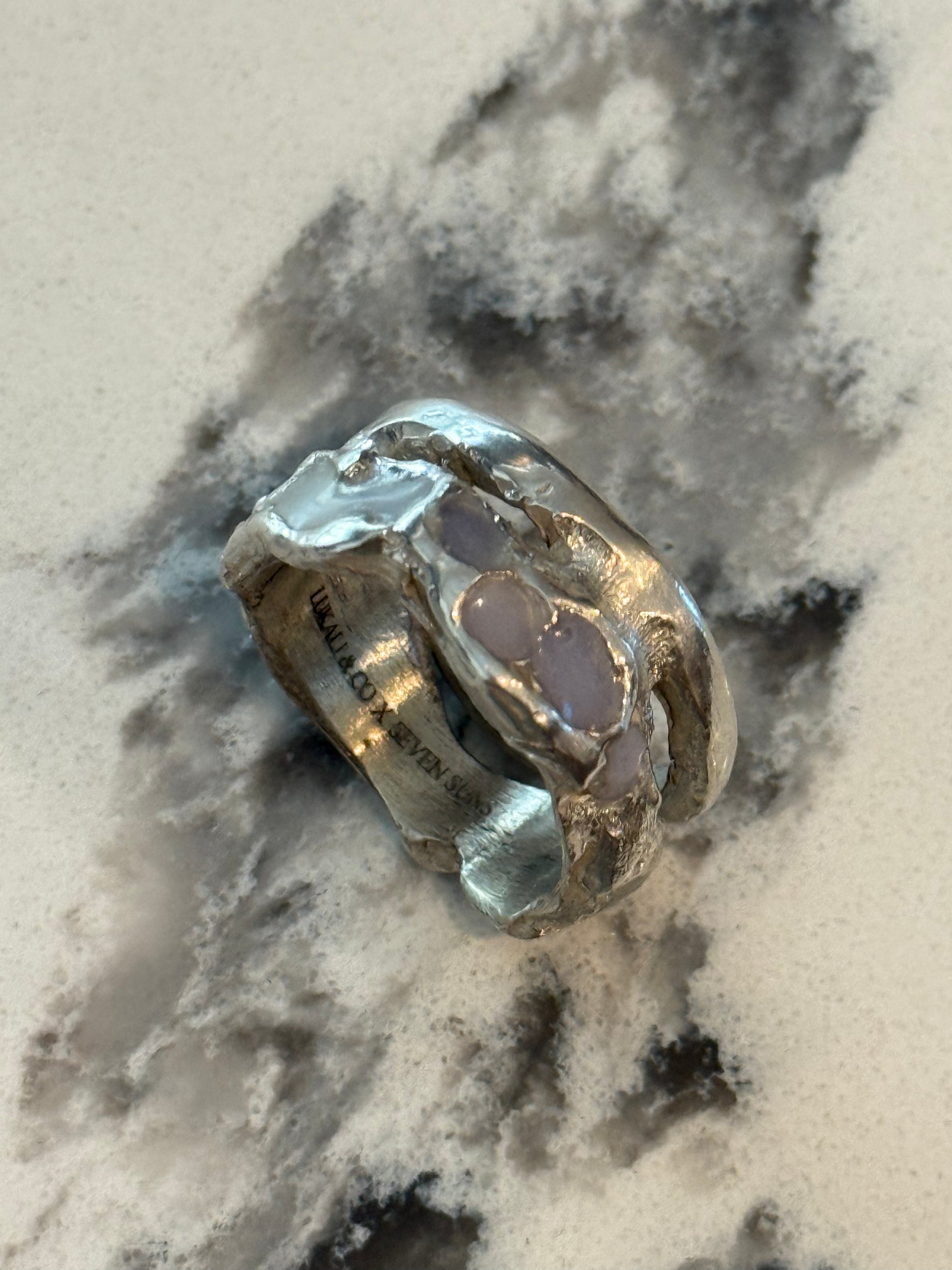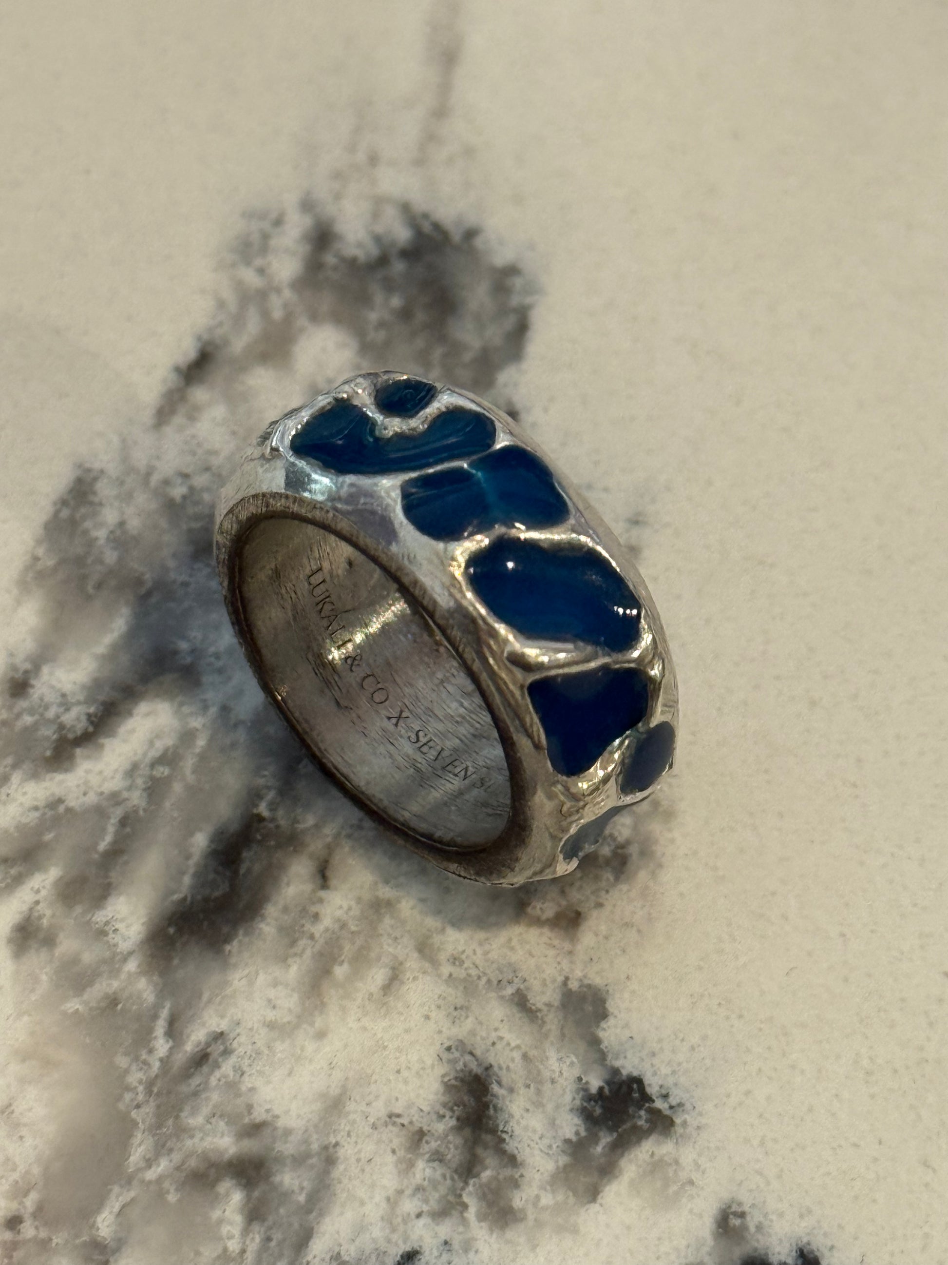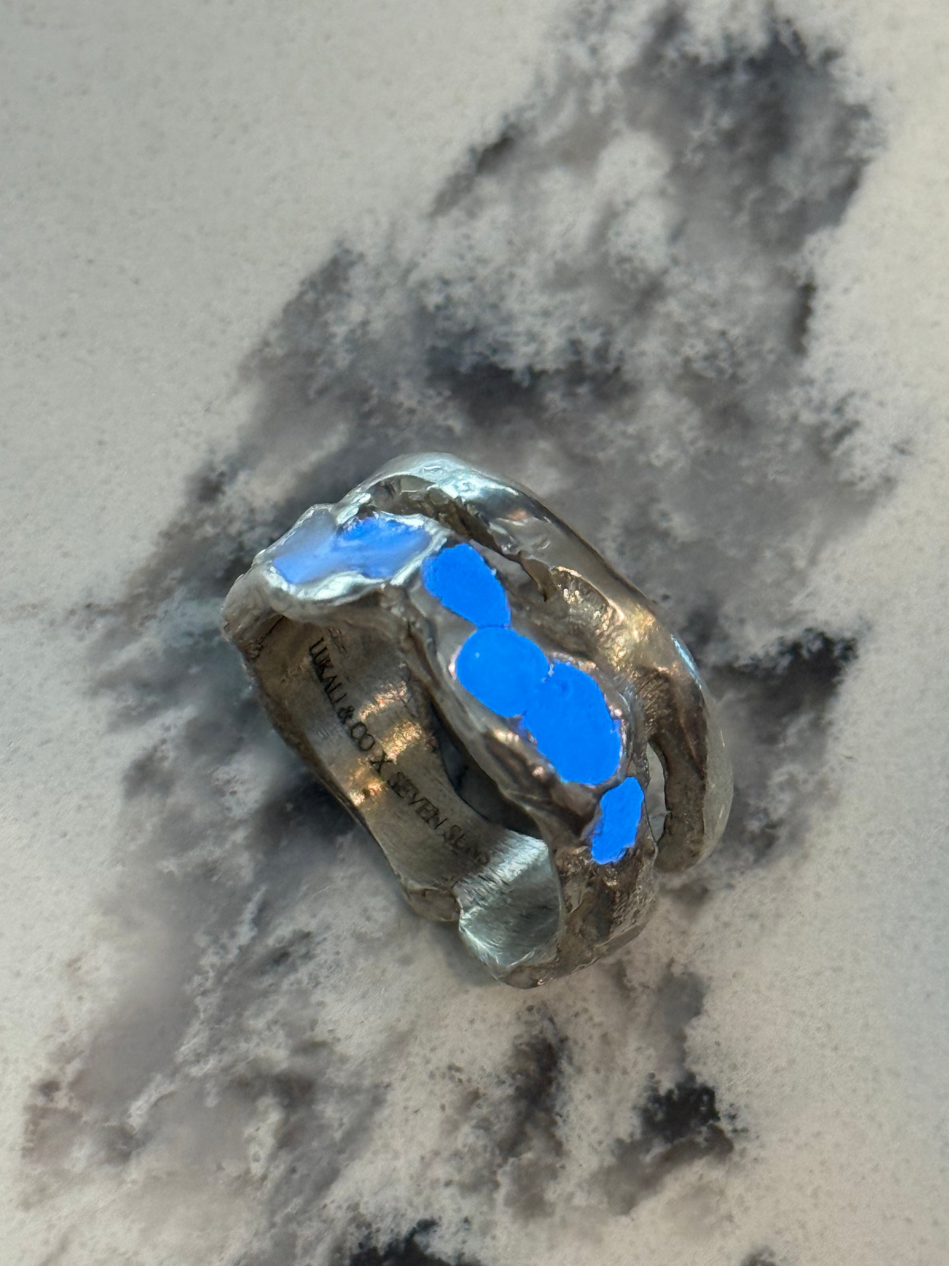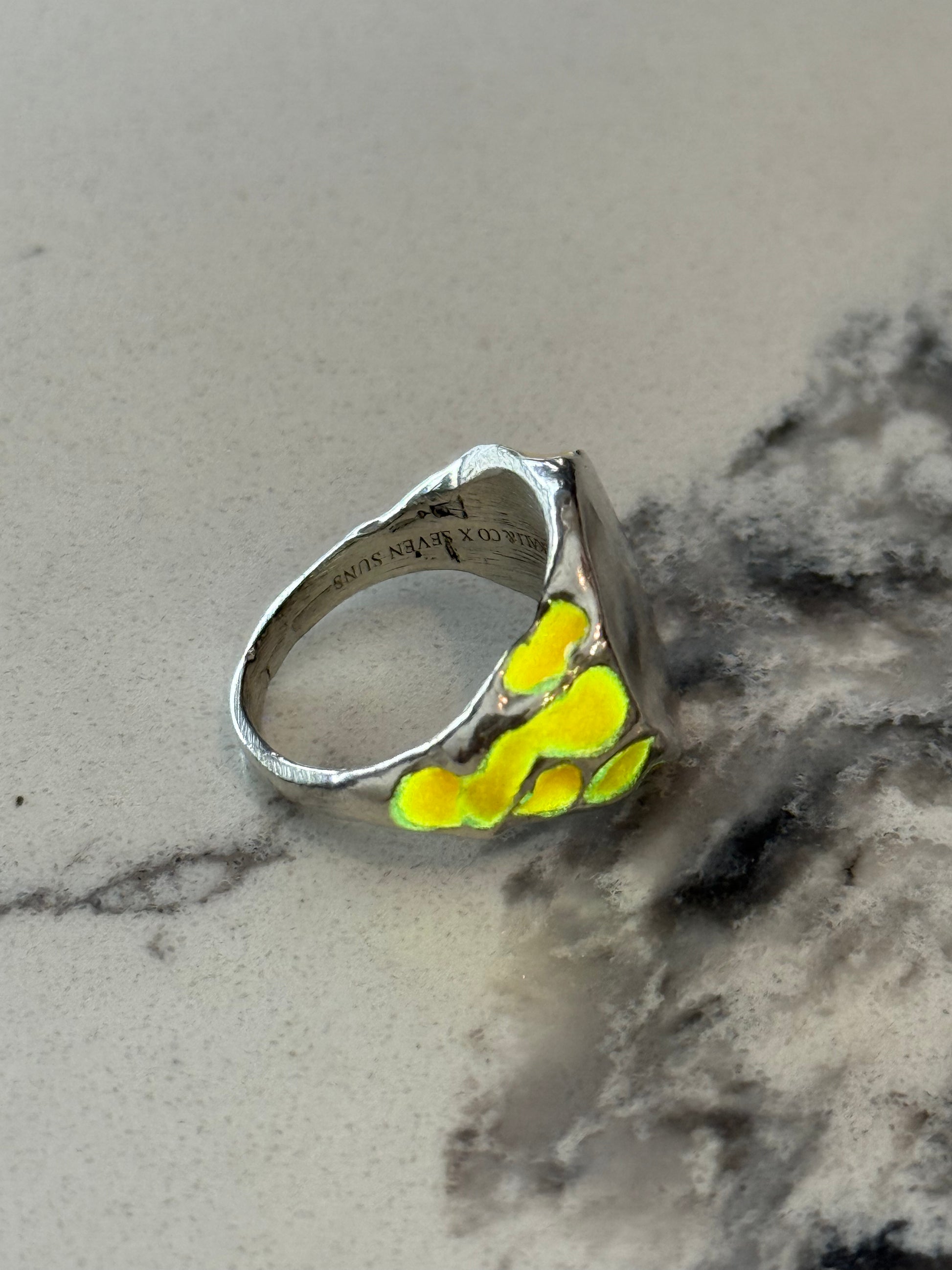 When Lukali saw what Seven Suns Jewelry was creating, it instantly sparked a vision. Their raw, meteor-like textures had that feeling of a relic that just emerged from the earthâs core. Pair that with the glow enamel weâve been perfecting, and it felt inevitable â we had to make it happen. A true âmeteor ring,â alive with light.