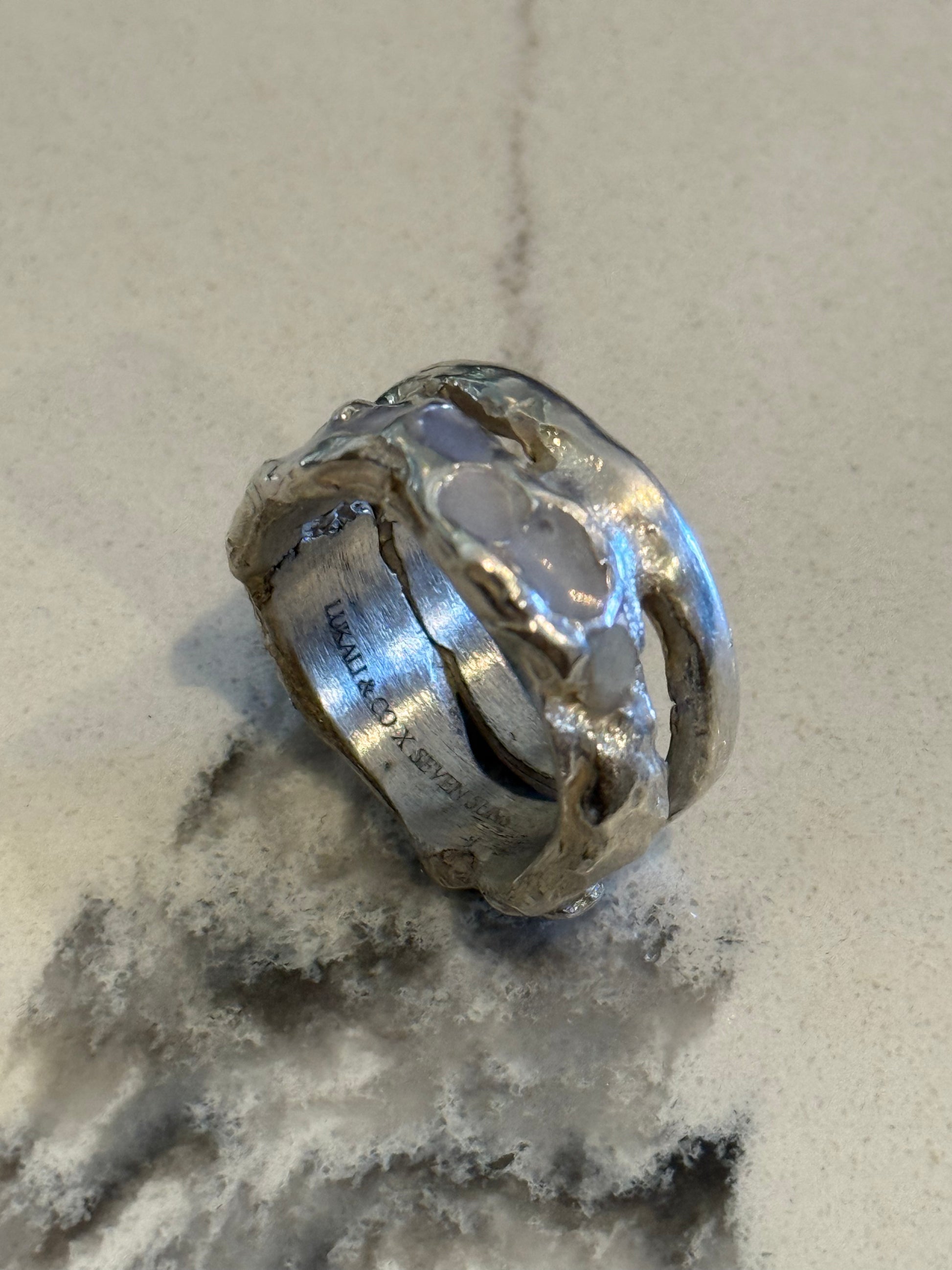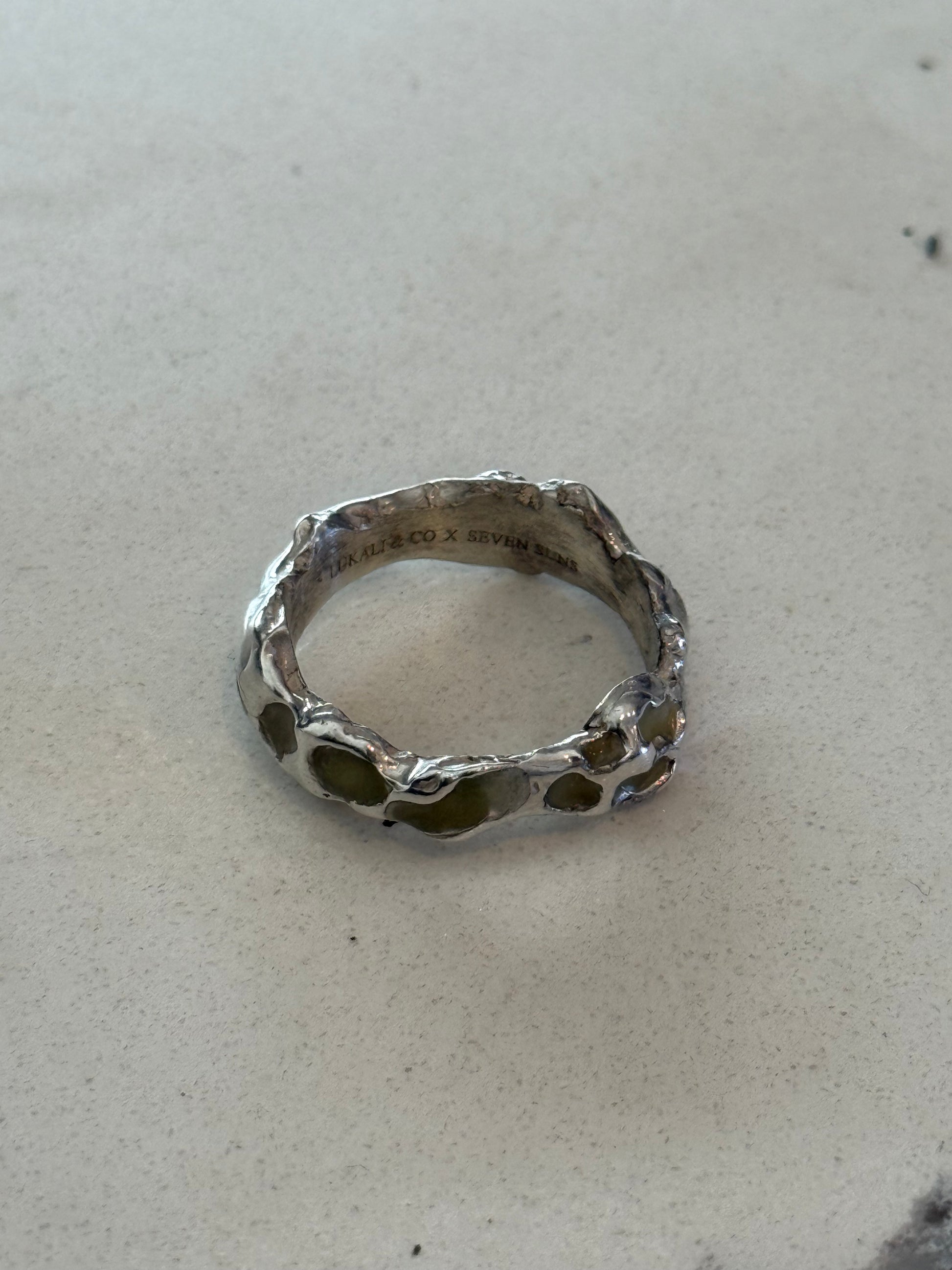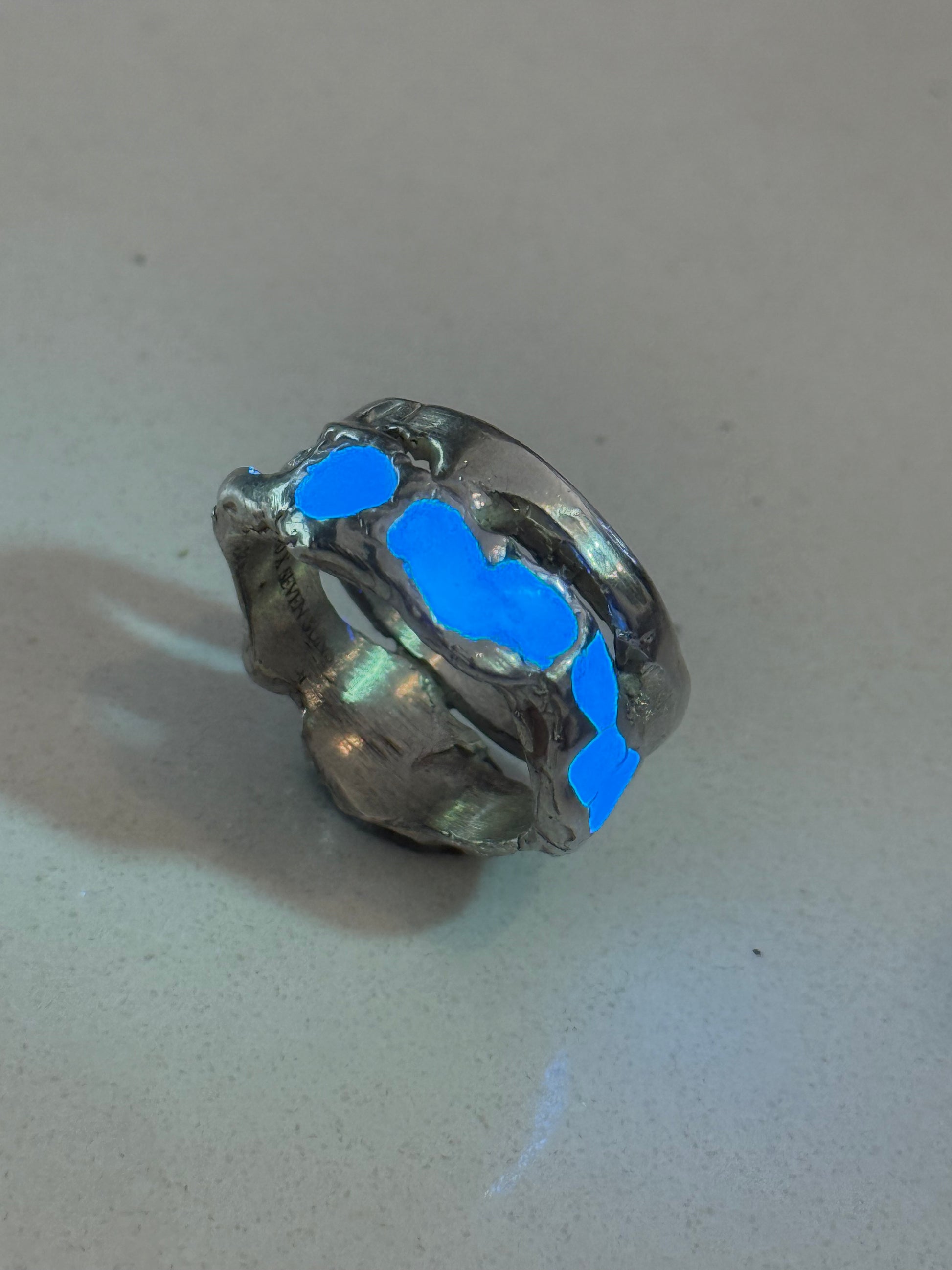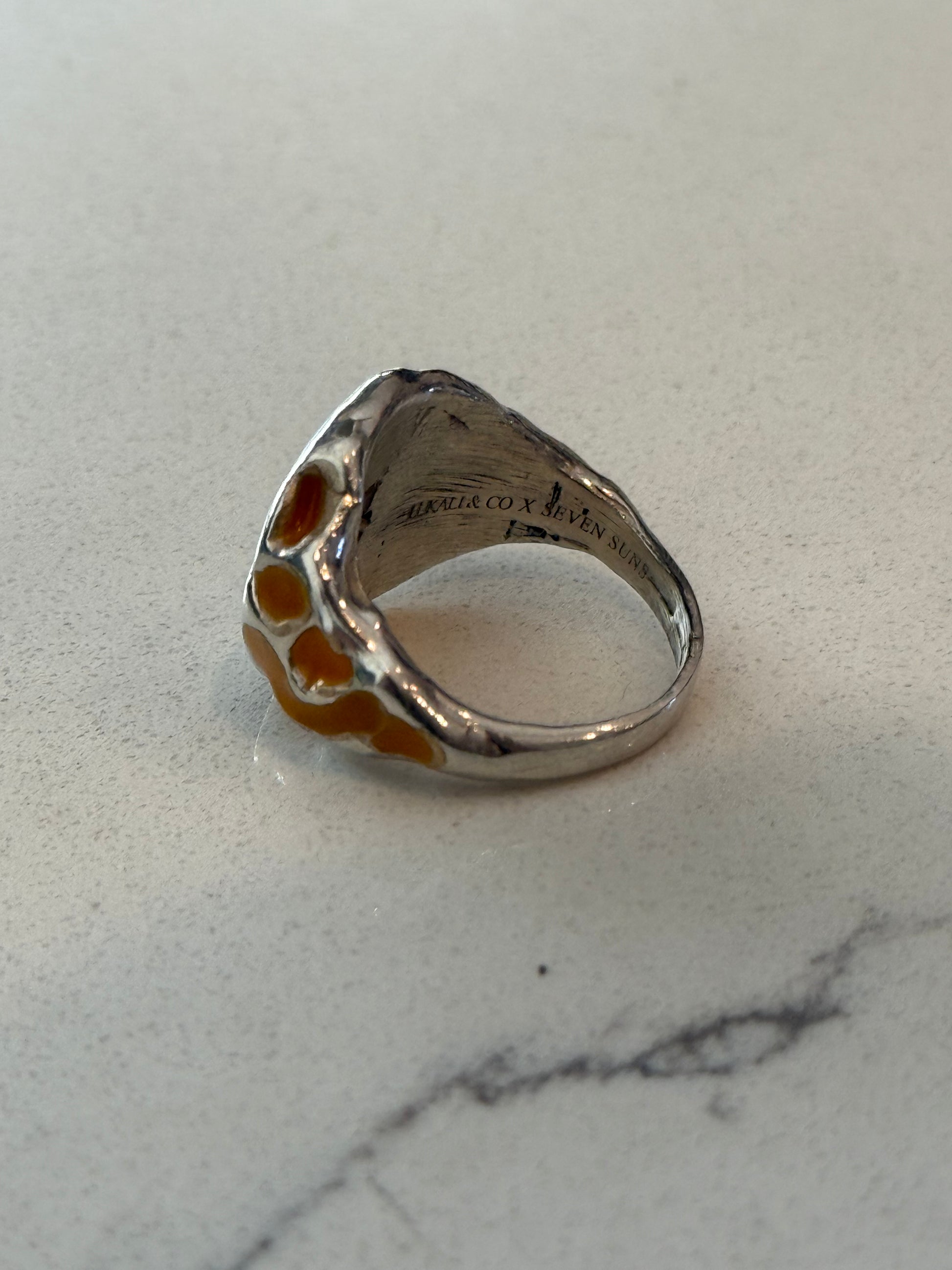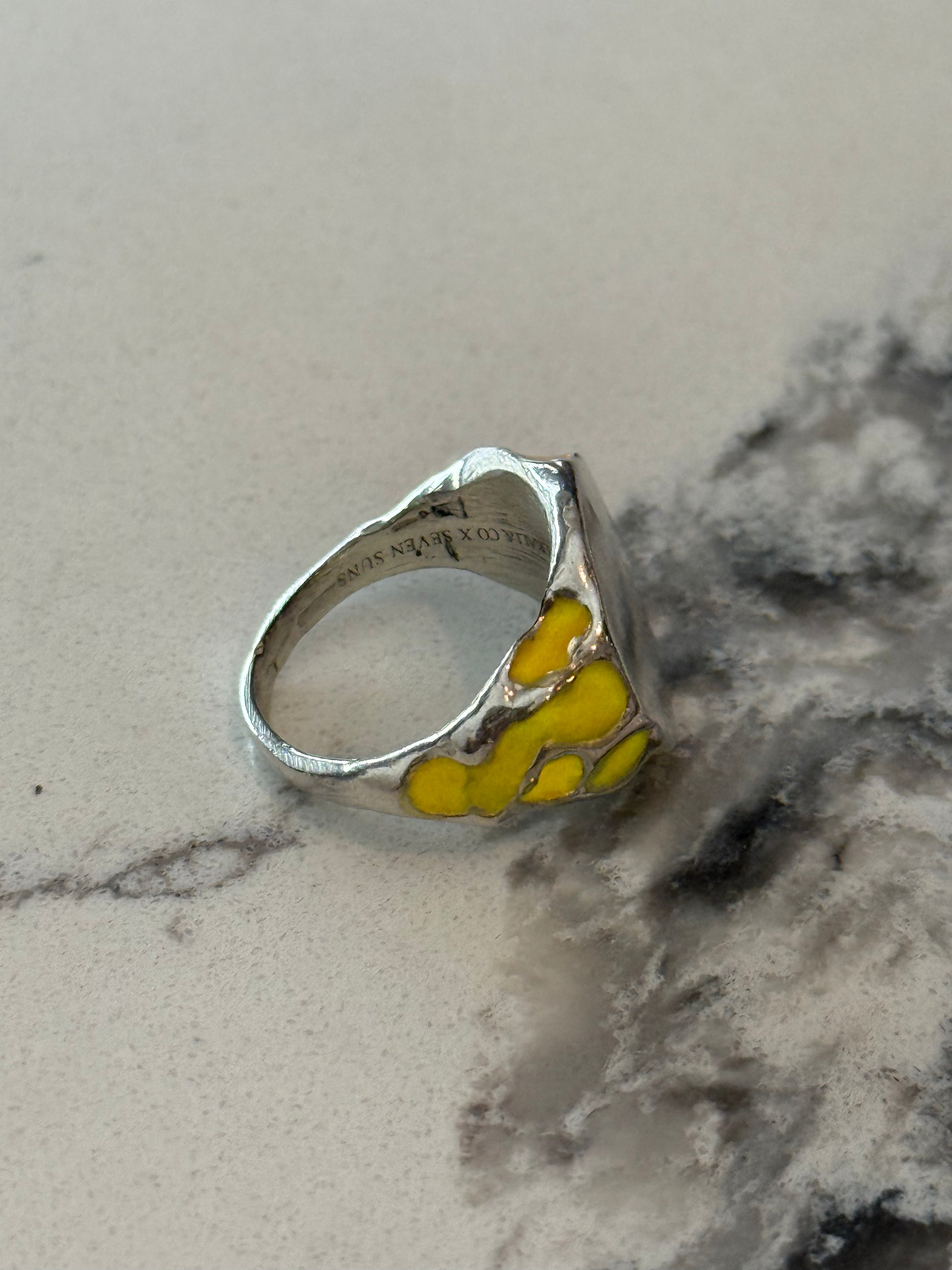 When Lukali saw what Seven Suns Jewelry was creating, it instantly sparked a vision. Their raw, meteor-like textures had that feeling of a relic that just emerged from the earthâs core. Pair that with the glow enamel weâve been perfecting, and it felt inevitable â we had to make it happen. A true âmeteor ring,â alive with light.