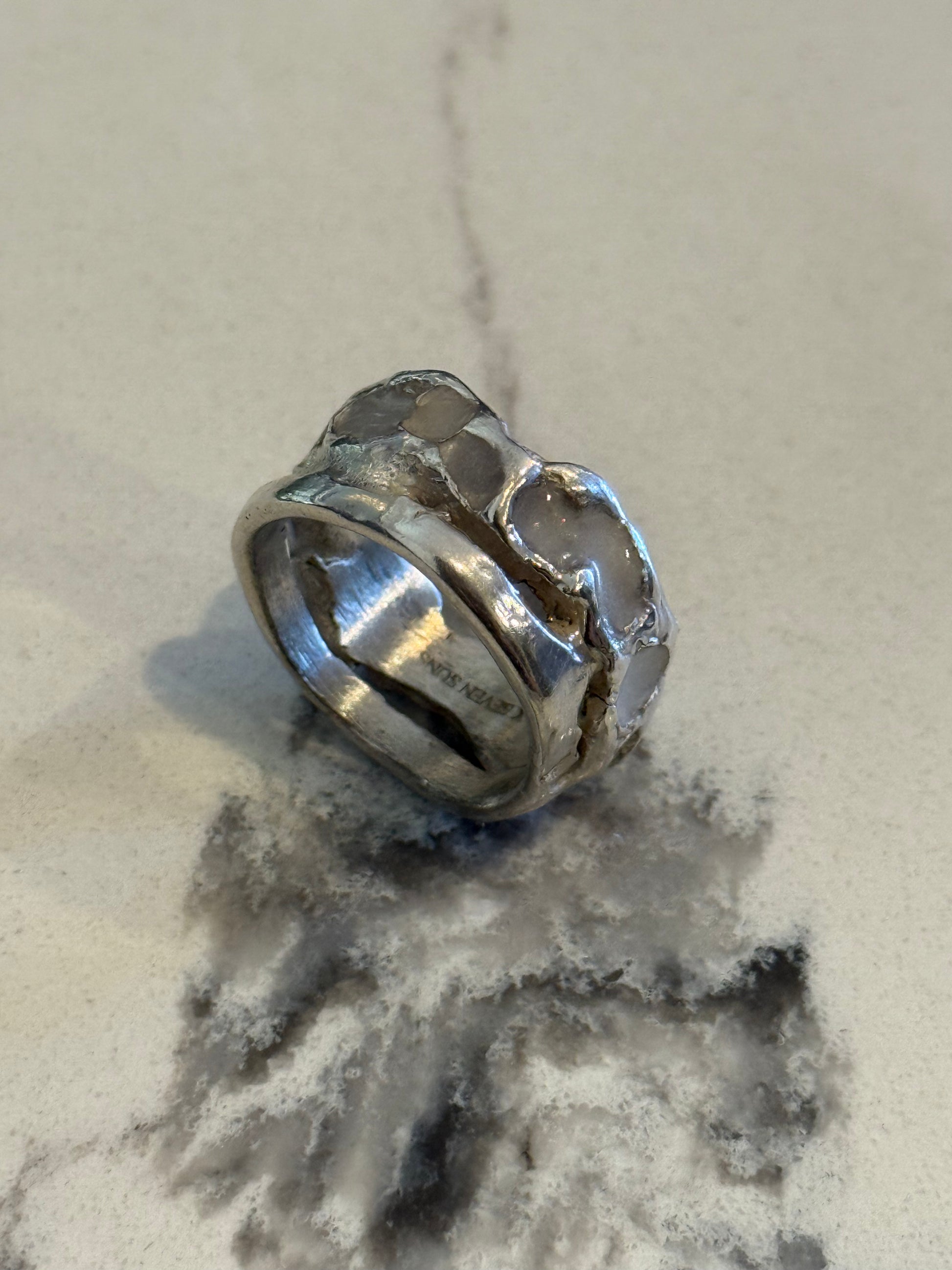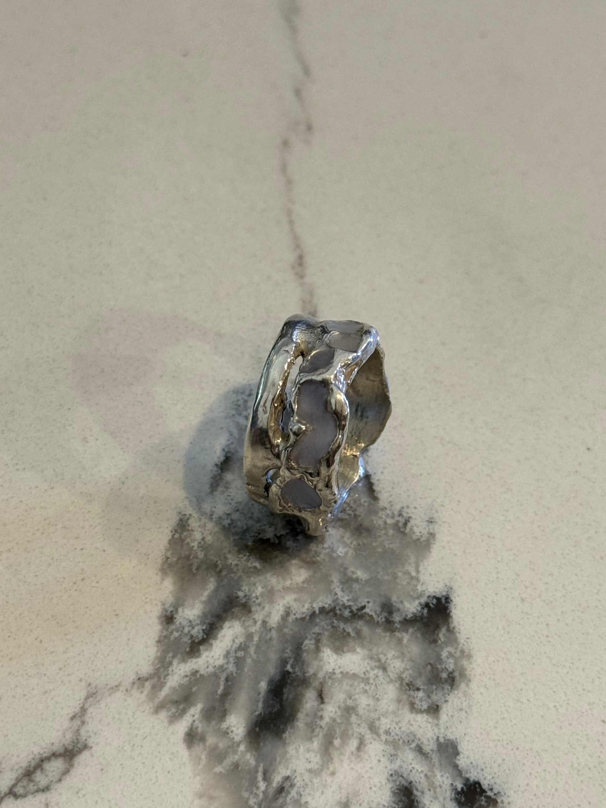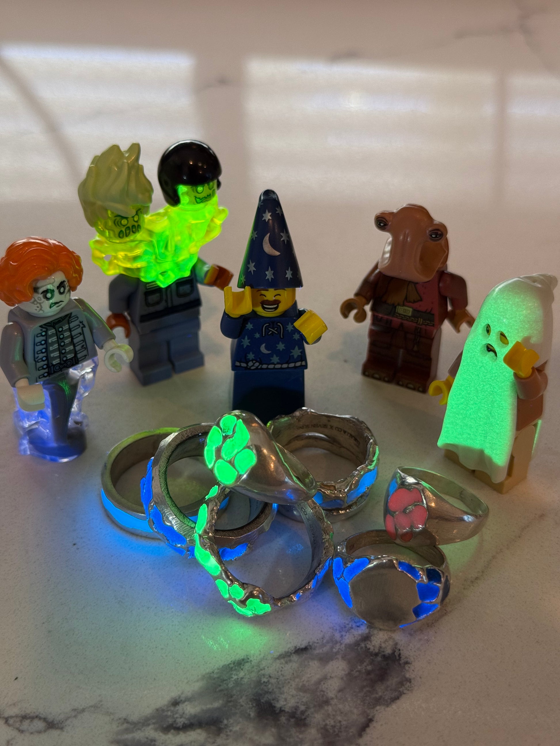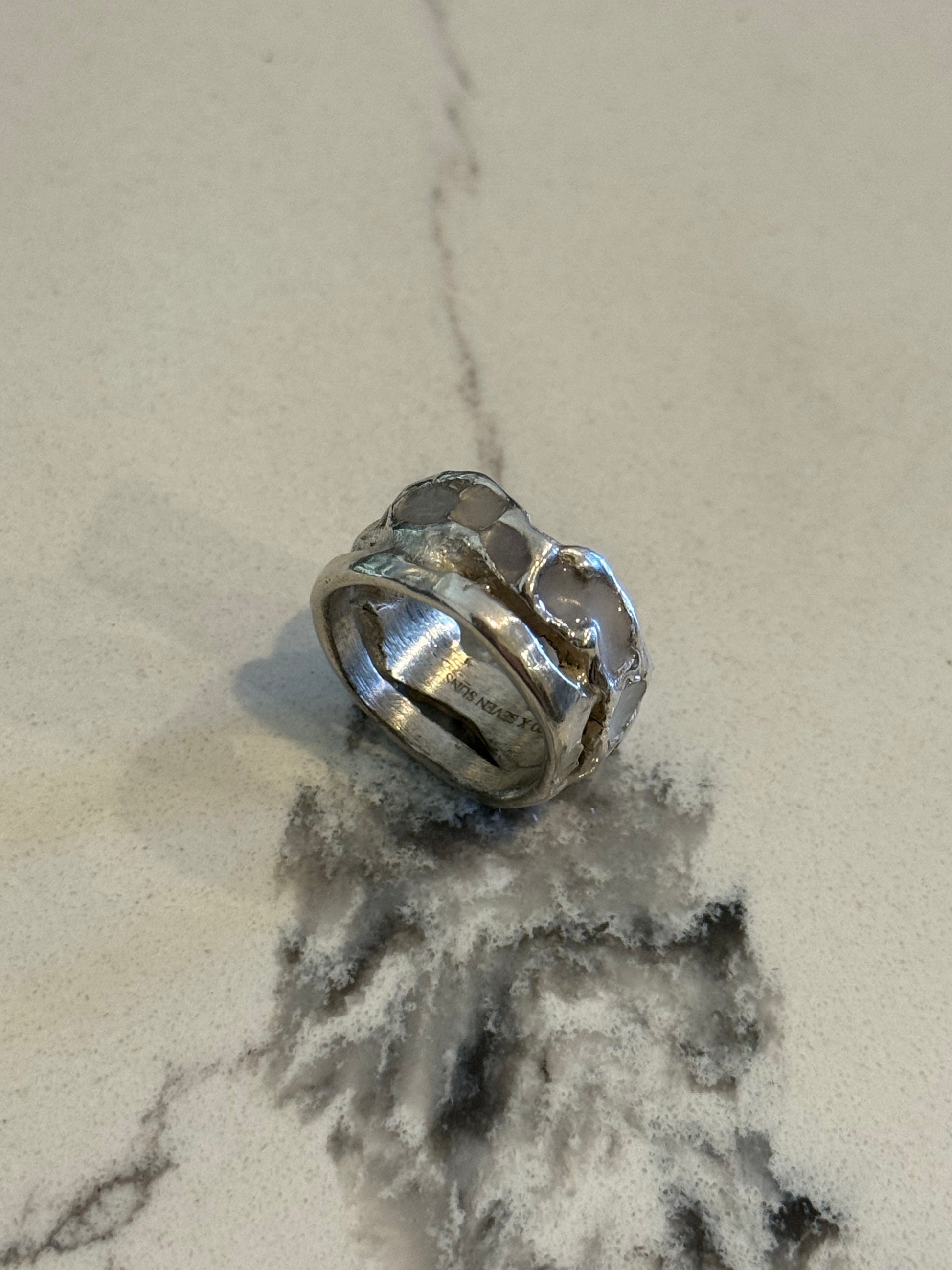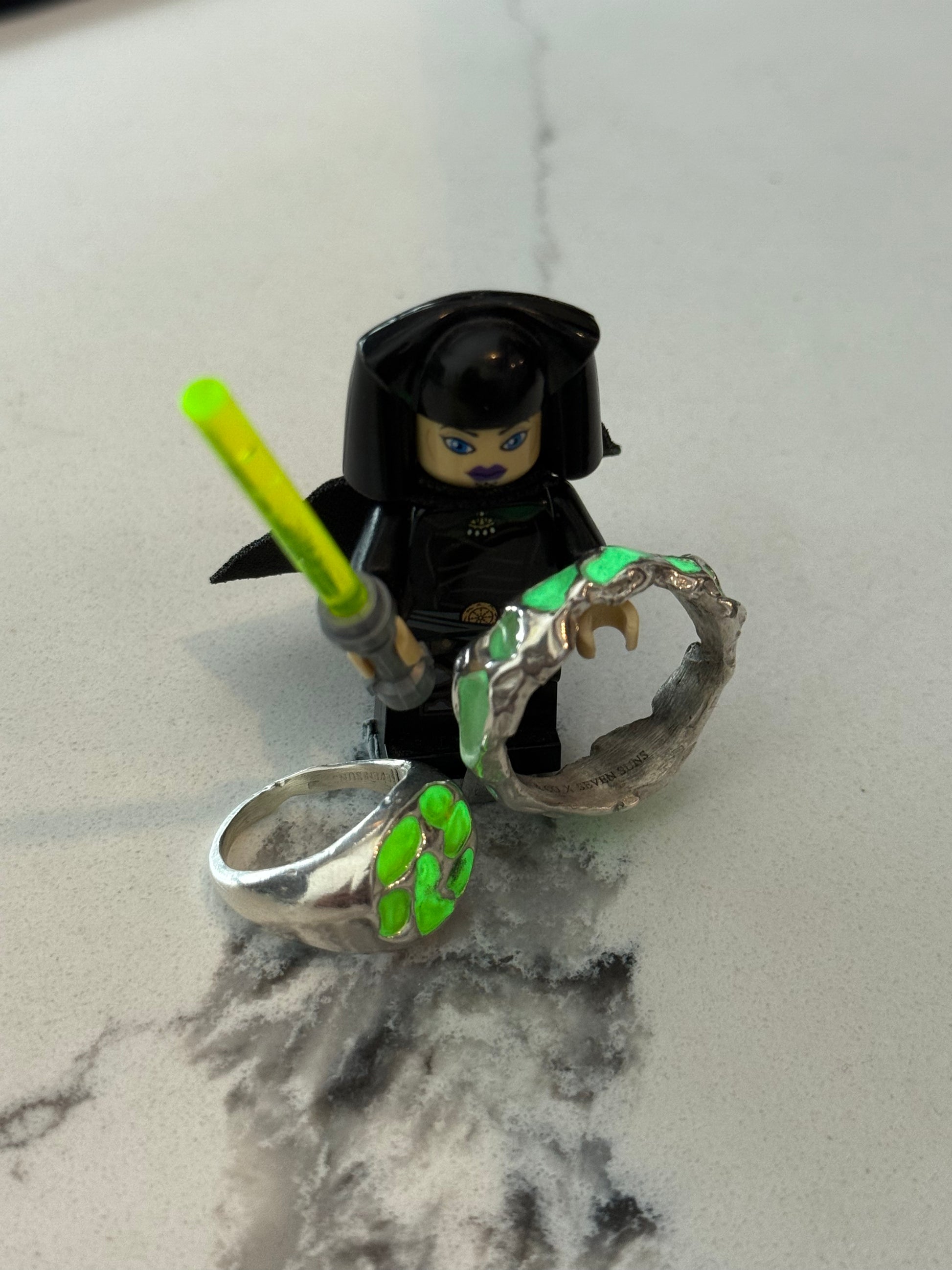 When Lukali saw what Seven Suns Jewelry was creating, it instantly sparked a vision. Their raw, meteor-like textures had that feeling of a relic that just emerged from the earthâs core. Pair that with the glow enamel weâve been perfecting, and it felt inevitable â we had to make it happen. A true âmeteor ring,â alive with light.