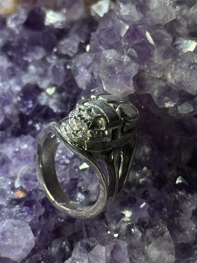 This one’s a symbol of protection, transformation, and timeless power. The Scarab Signet Ring is cast in solid .925 sterling silver, sculpted with layered detail and high-set symmetry that makes it feel both ancient and futuristic.