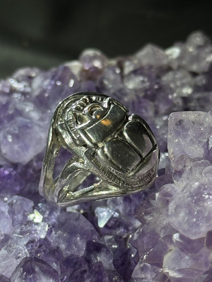 The scarab was worn by pharaohs for a reason. Channel strength. Wear meaning. Carry the past with you.